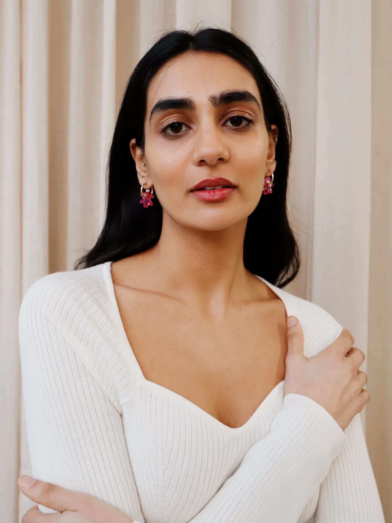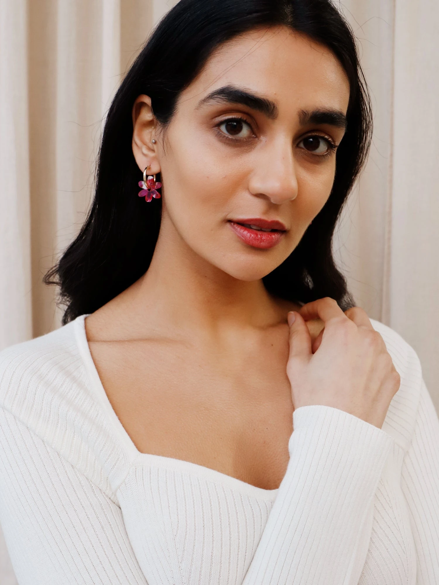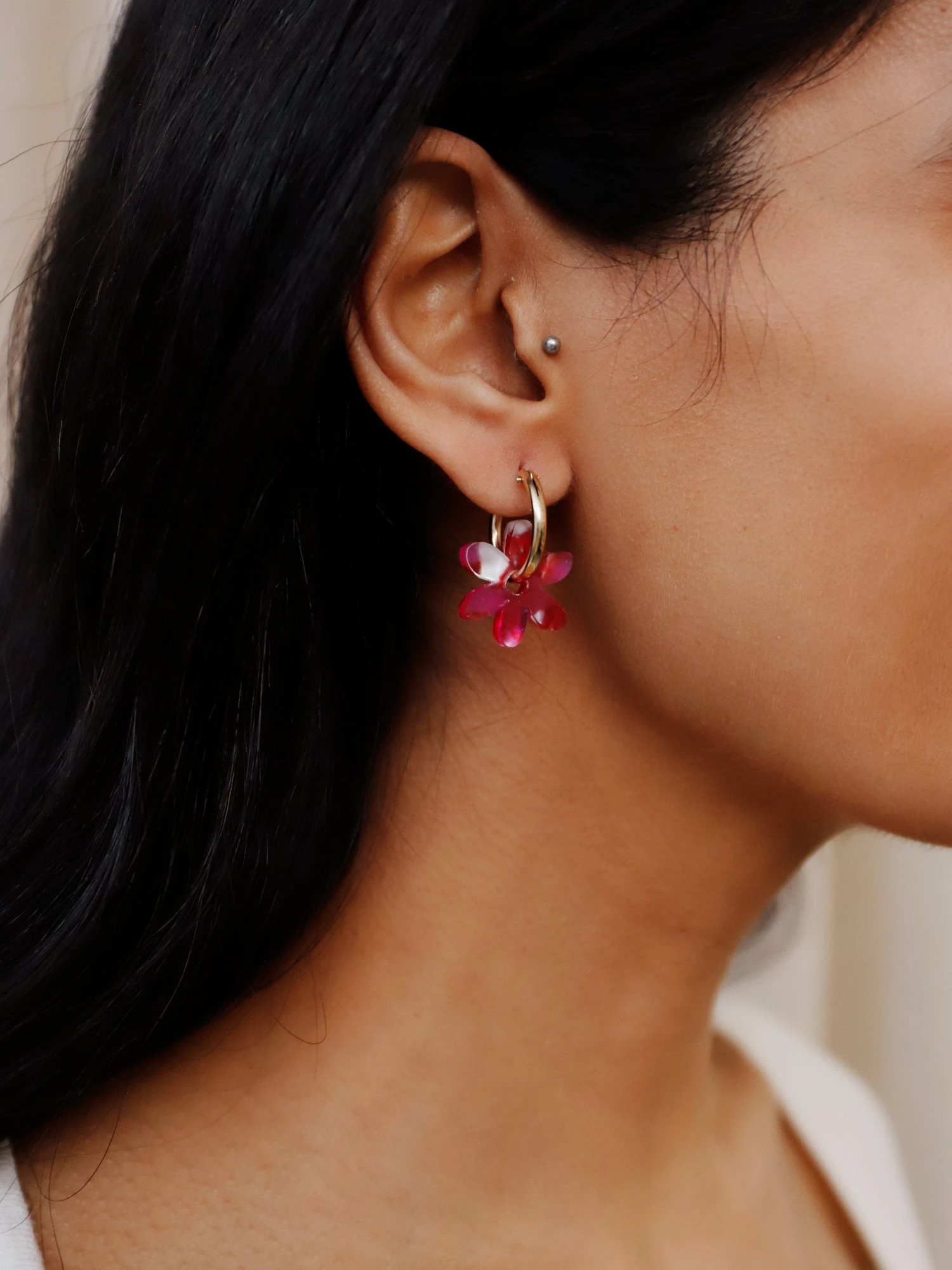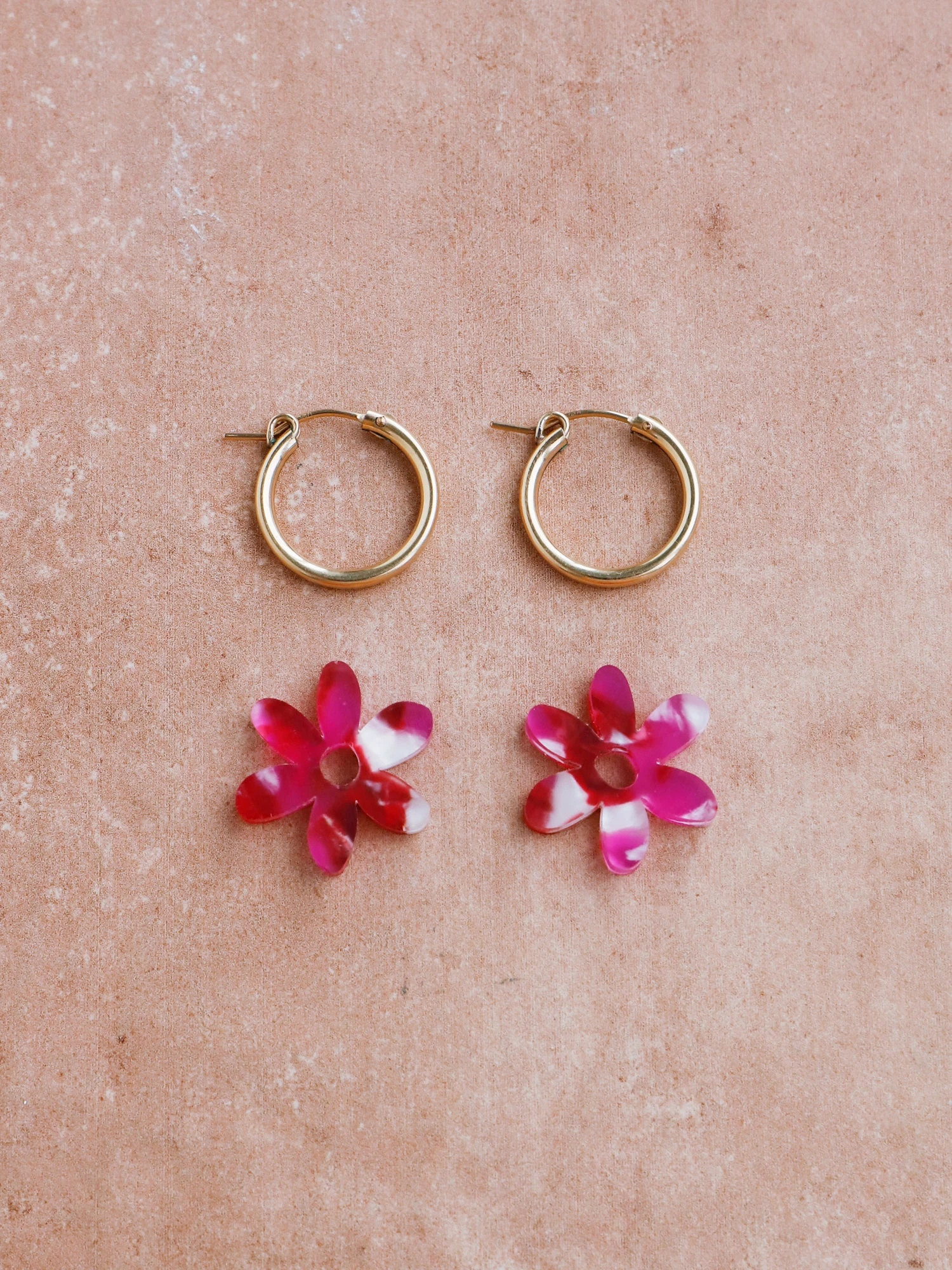- Optional 14k gold-filled hoops – can be worn separately