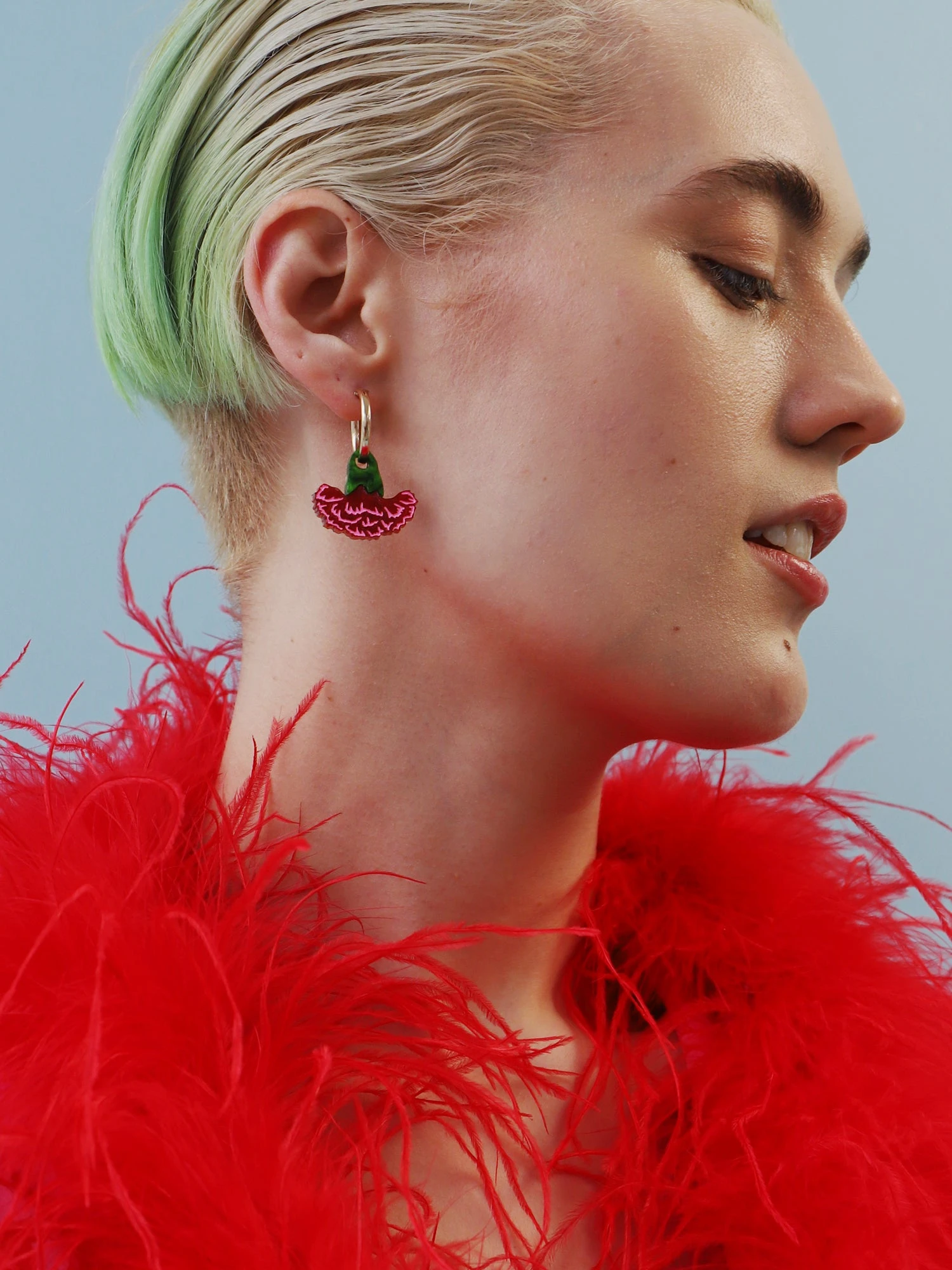 Inspired by the lively hues of a blooming garden, our Carnation Hoop earrings are made from acrylic with hand-inked engravings.
