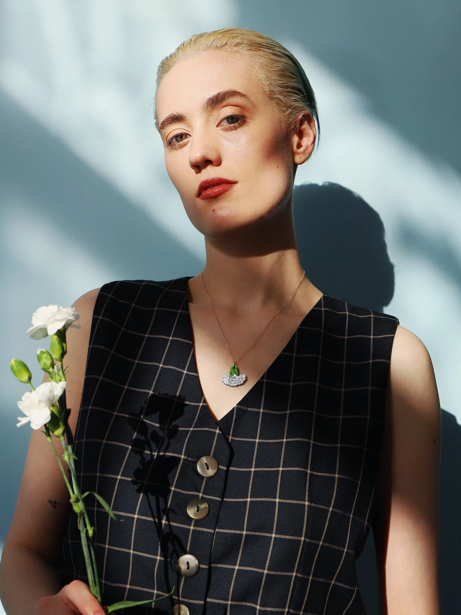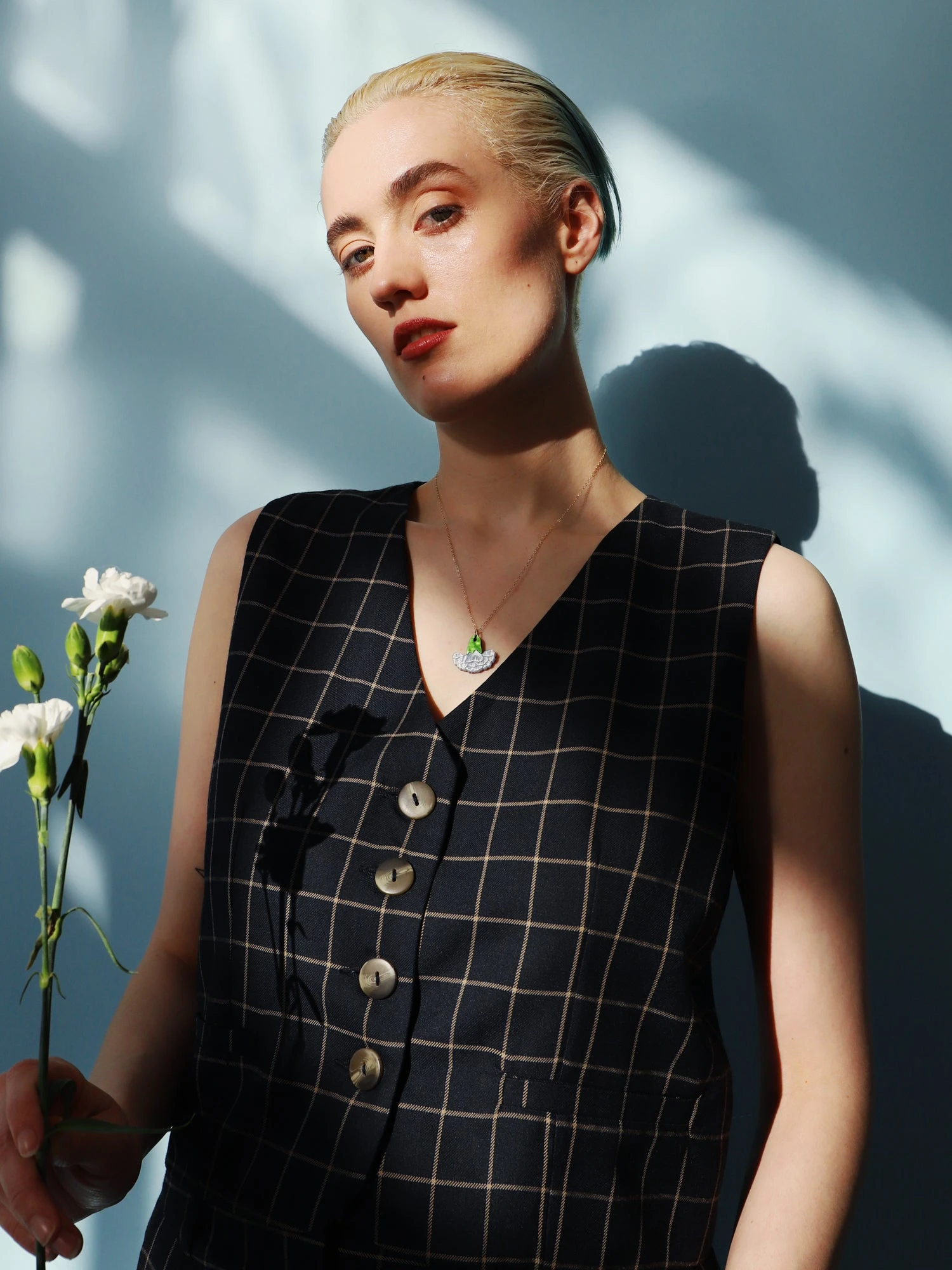 Inspired by the lively hues of a blooming garden, our Carnation Necklace is made from acrylic with hand-inked engravings. Â