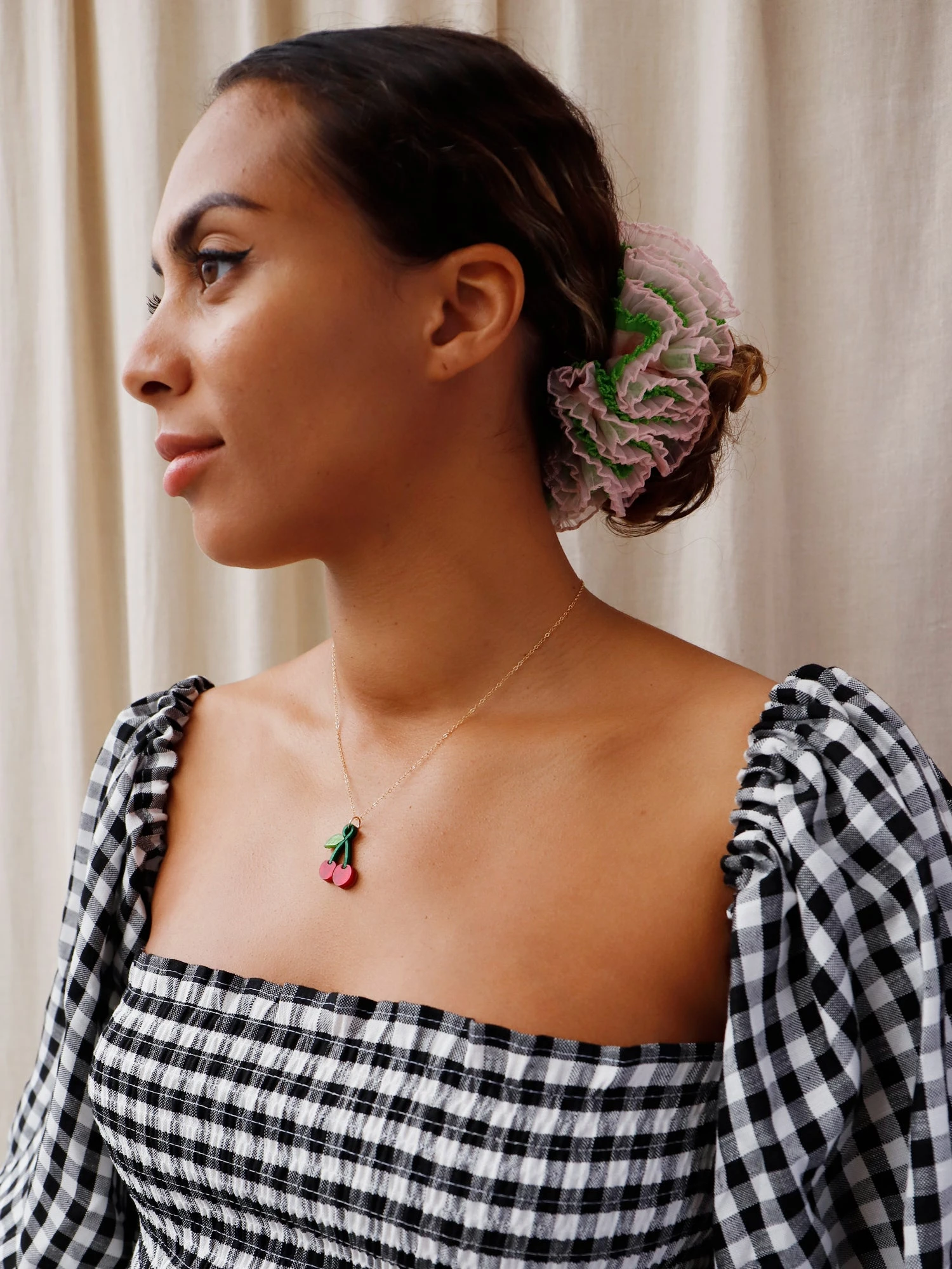 This fruity necklace will be the cherry on top of your outfit! Made from acrylic with hand-inked details.