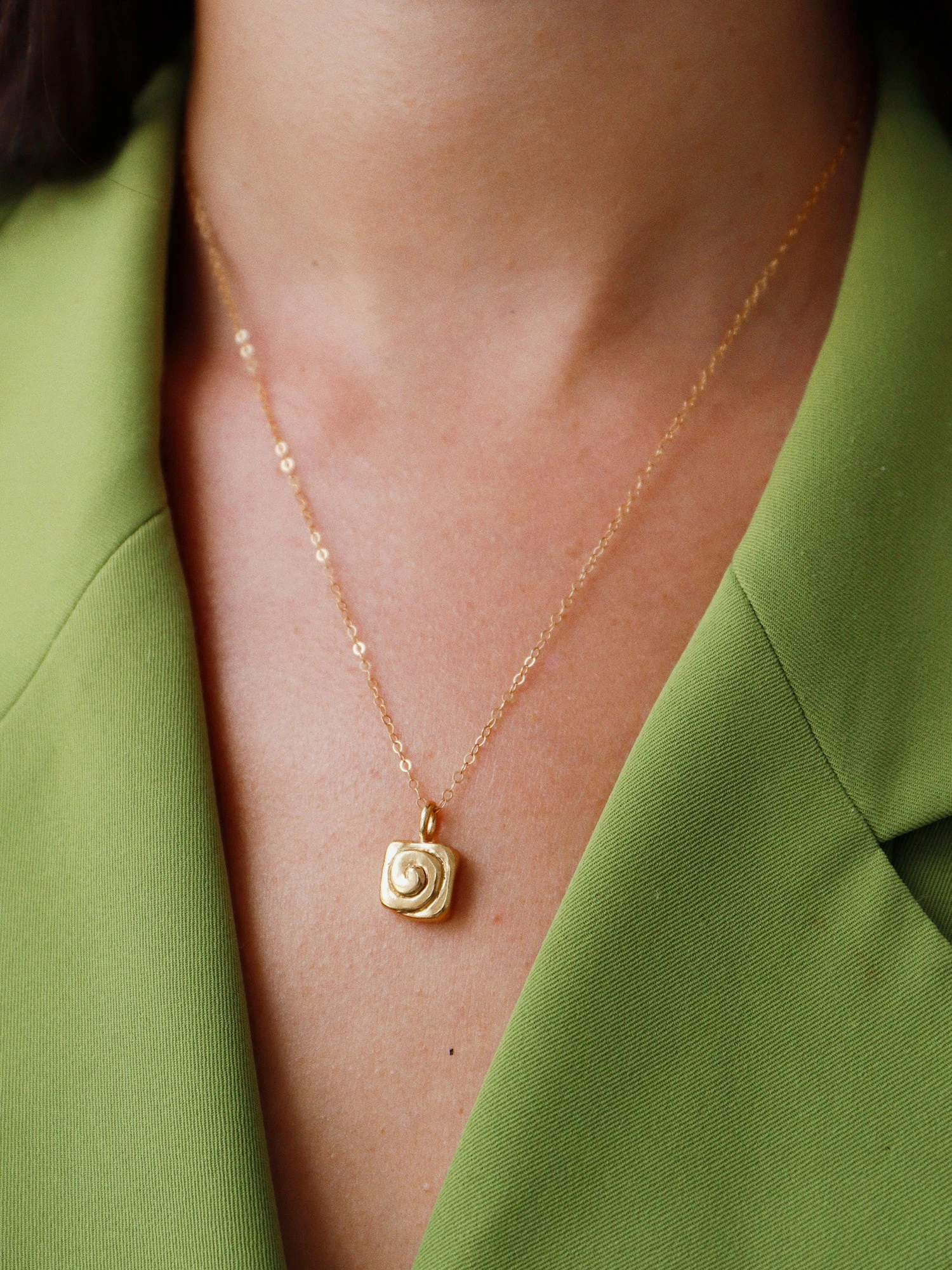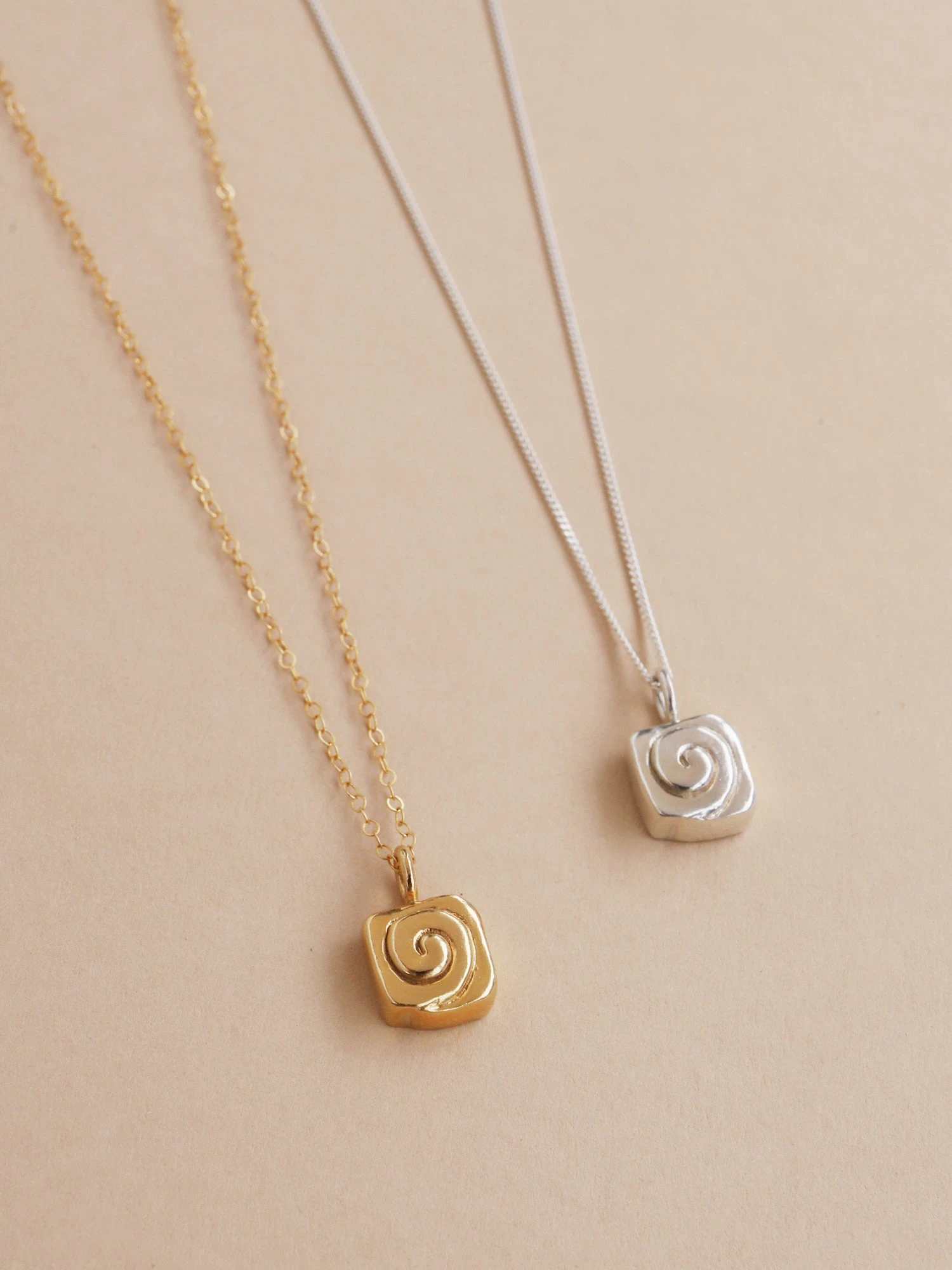 Hannah designed and hand-carved the cinnamon bun pendant initially in wax. Each piece is then cast from a mould into recycled sterling silver using the the ancient technique of lost wax casting.