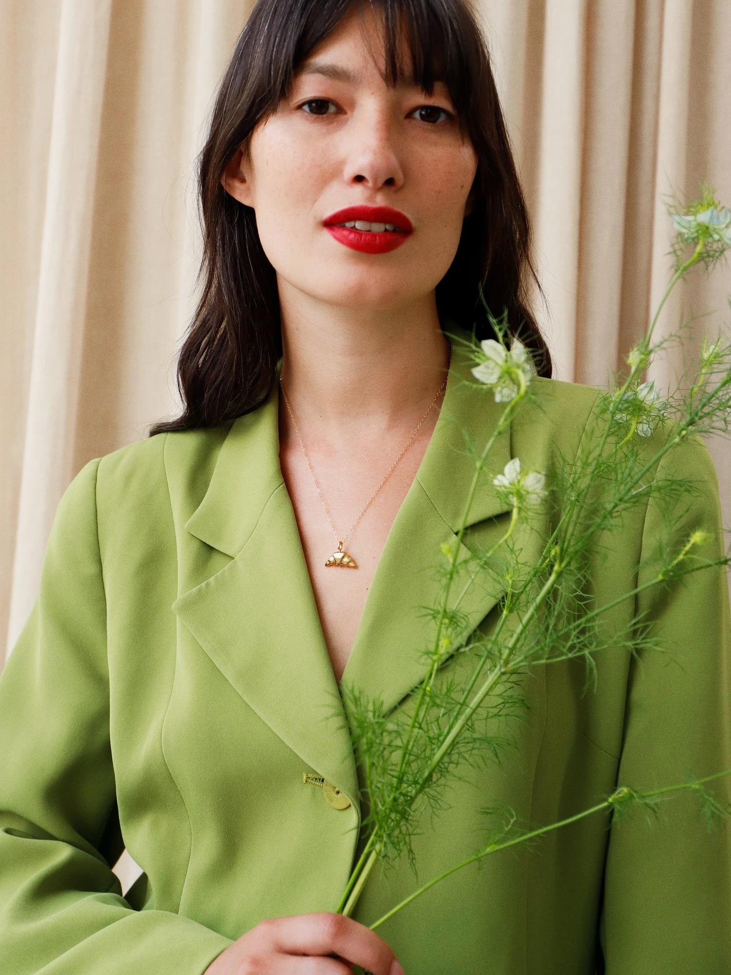 Hannah designed and hand-carved the croissant pendant initially in wax. Each piece is then cast from a mould into recycled sterling silver using the the ancient technique of lost wax casting.
