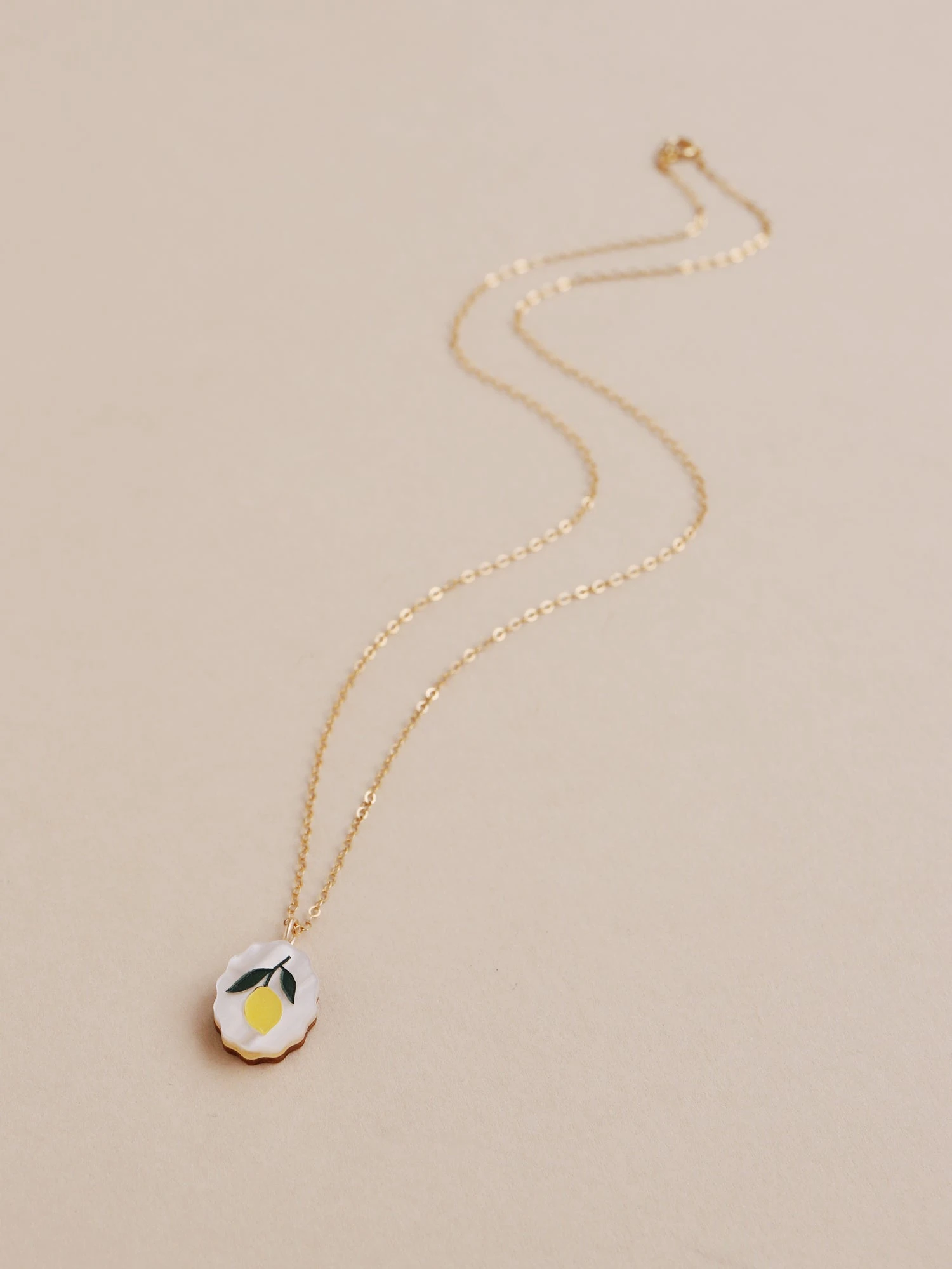 The perfect everyday essential, our lemon charm necklace is easy to wear. Inspired by vintage fruit stickers and Mediterranean tiles.Â