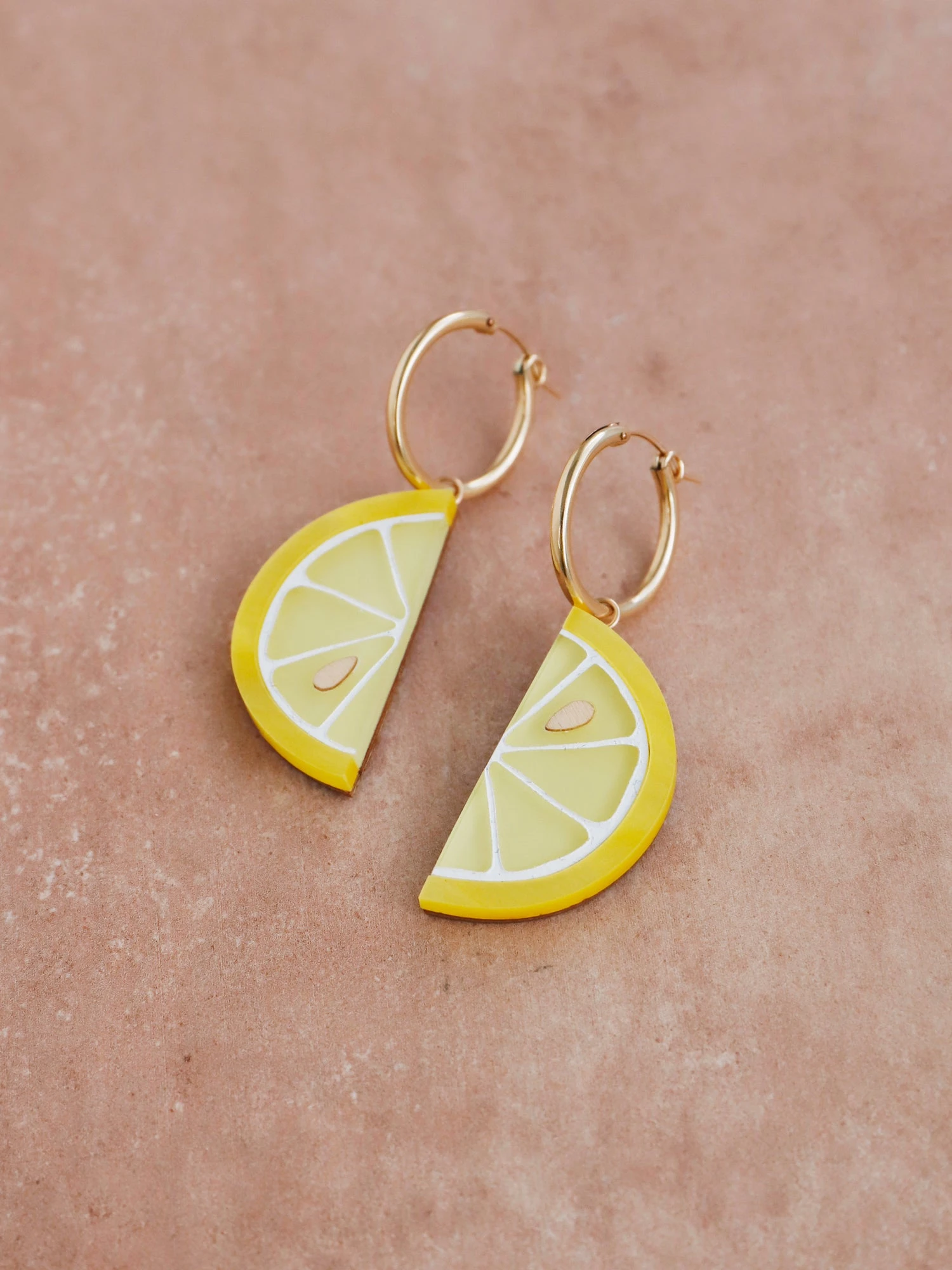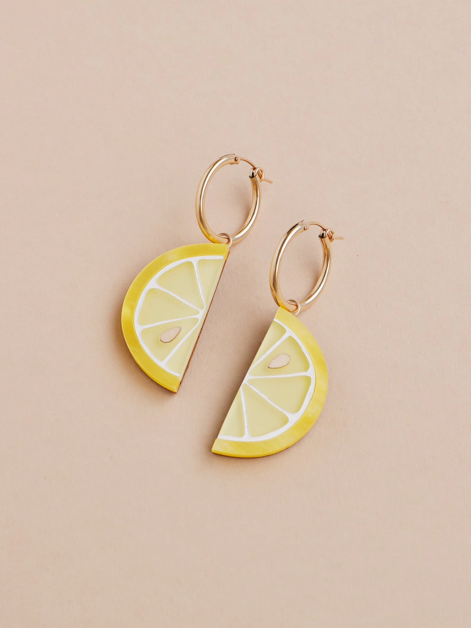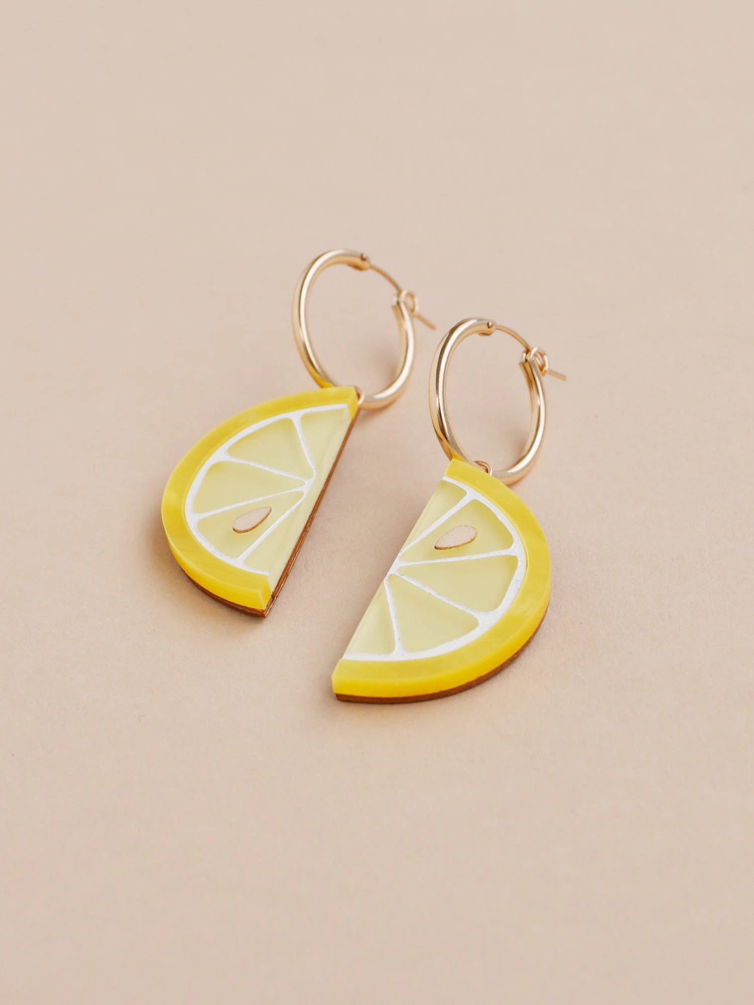 Squeeze some joy into your style with these zesty lemon earrings, made from acrylic, wood and 14k gold-filled findings.Â