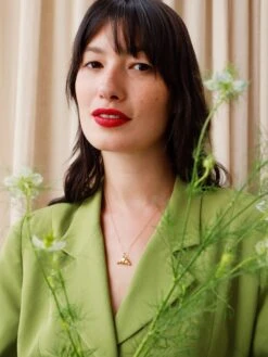We’ve brought back an updated version of our much loved pear necklace – a W&M classic! Romantic pear pendant made with acrylic, wood and hand-inked details.