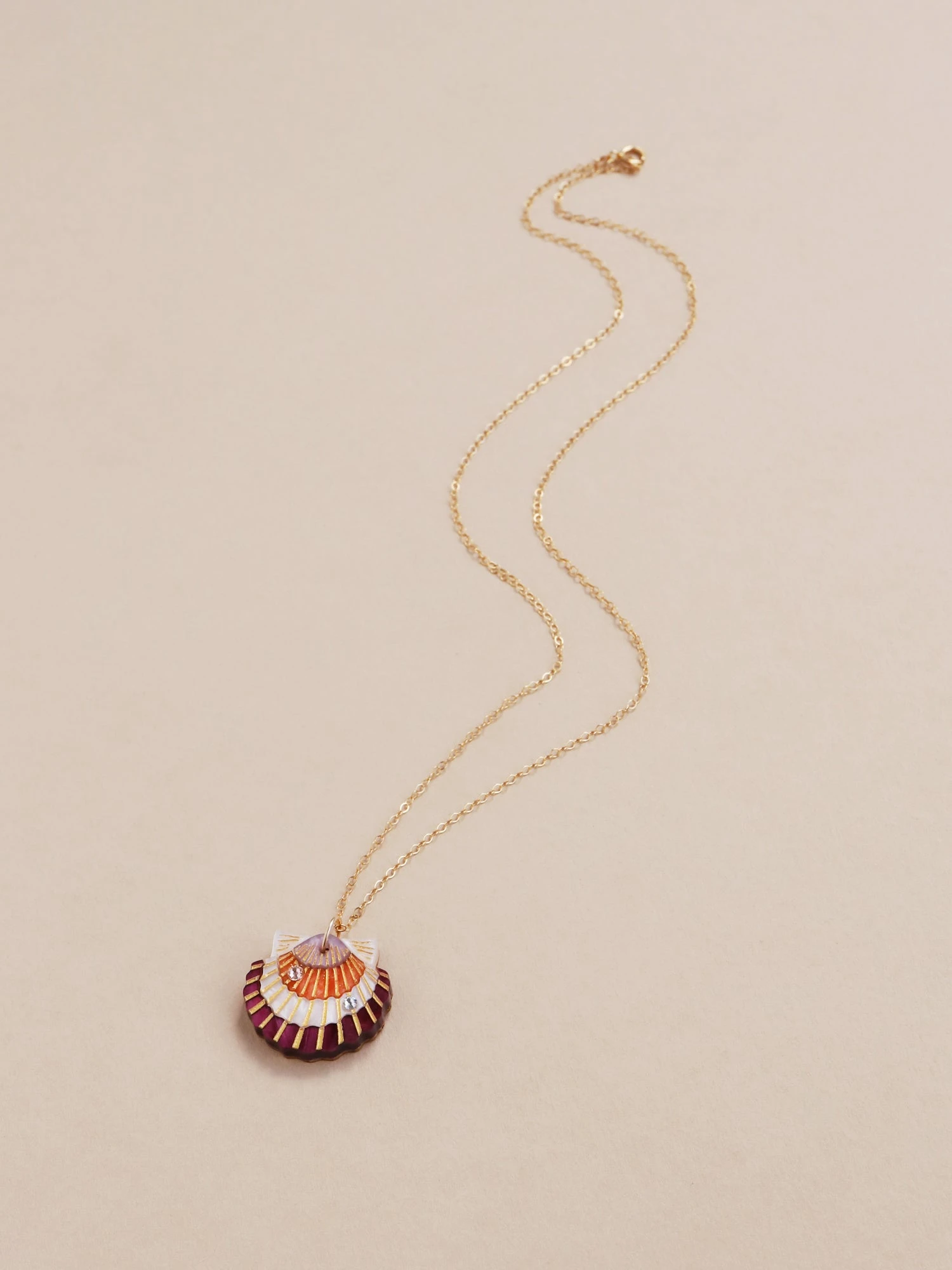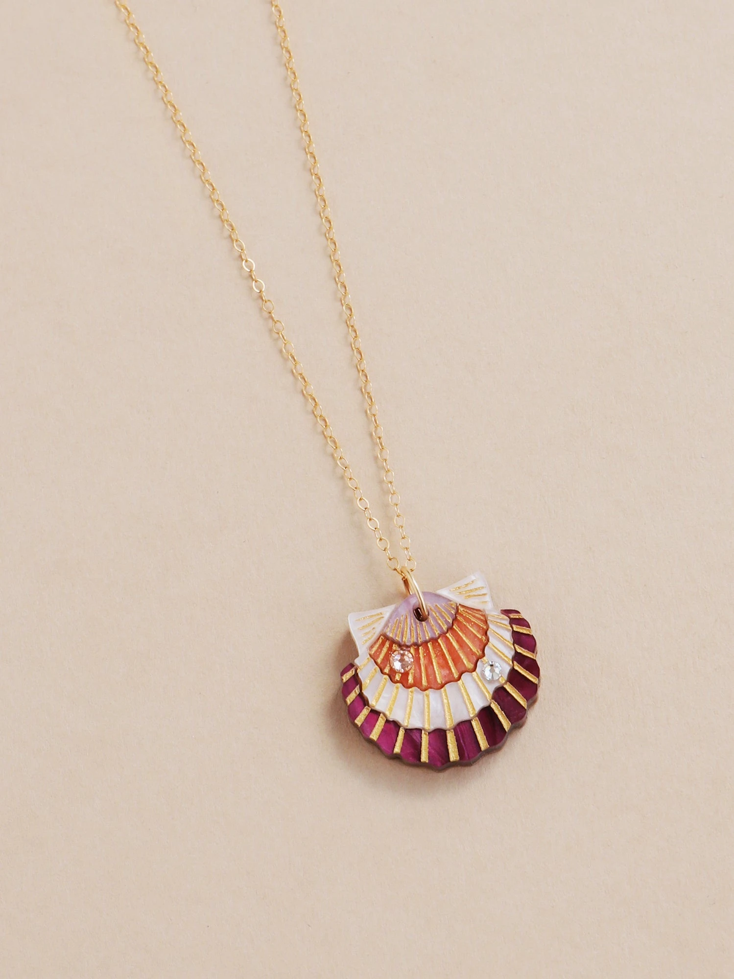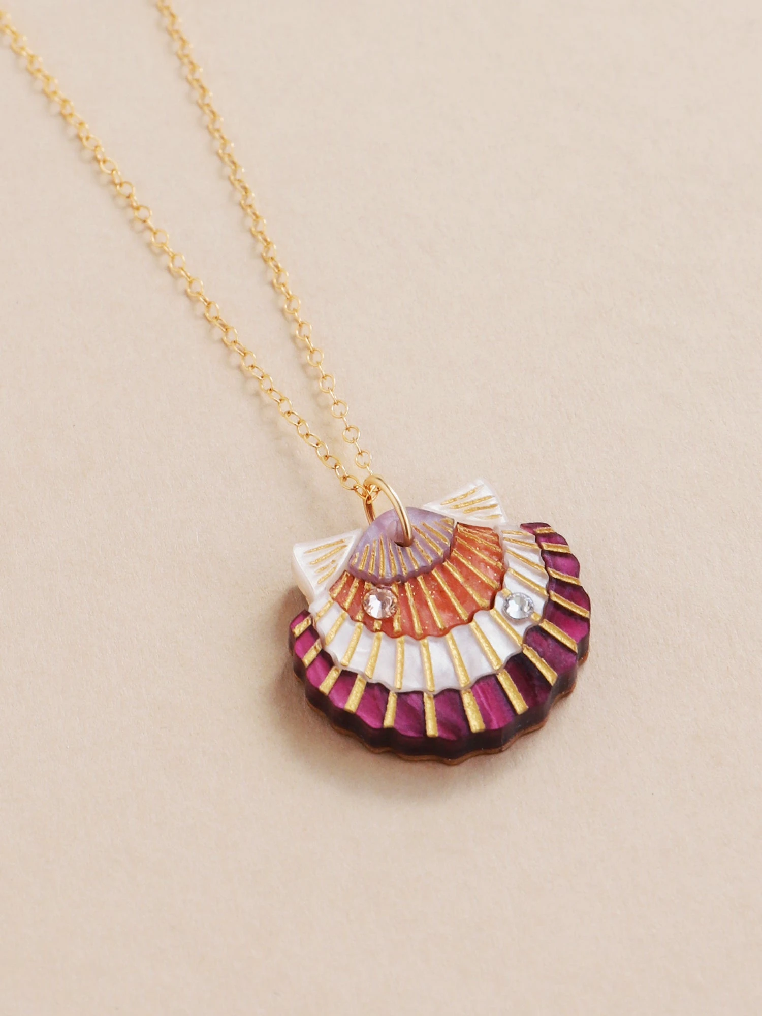 Get ready for a sunny day at the beach with our scallop shell necklace! Our hand-crafted scallop shell necklace is made with high quality crystals and hand-inked details.Â
