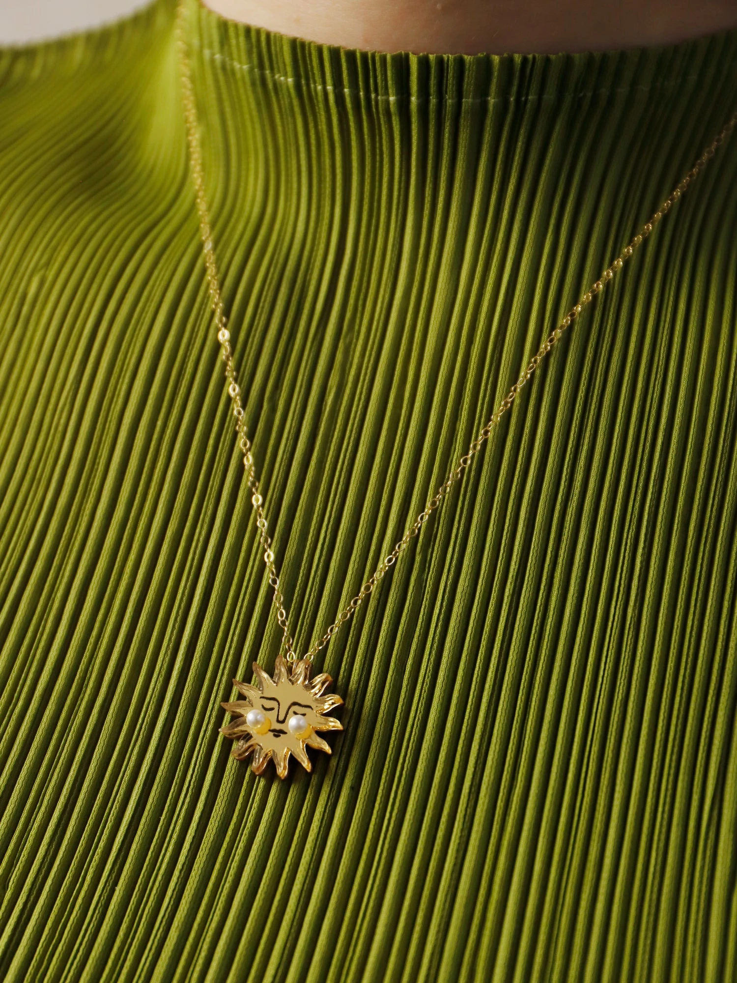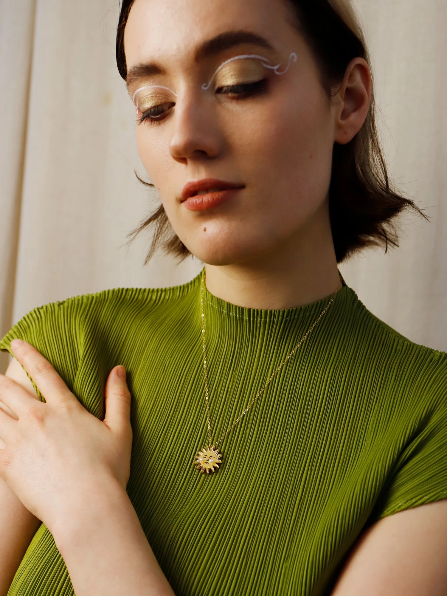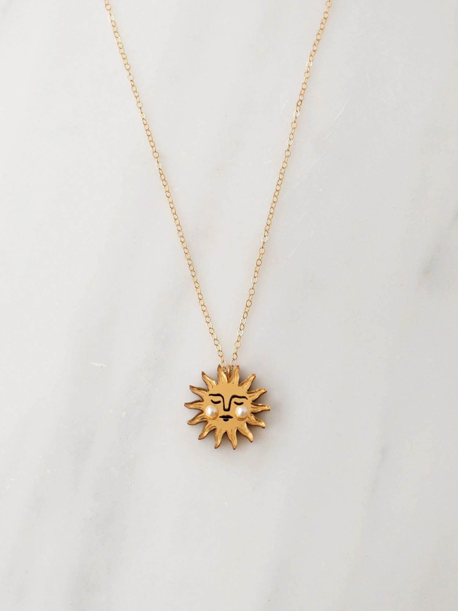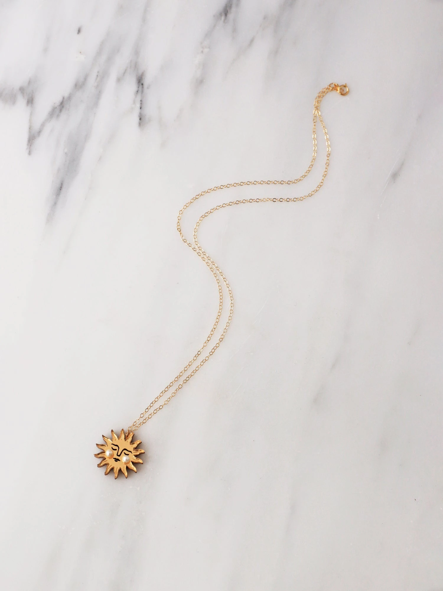 In need of some vitamin D? Carry a little ray of sunshine wherever you go with this golden sun pendant on a delicate 14k gold-filled chain.